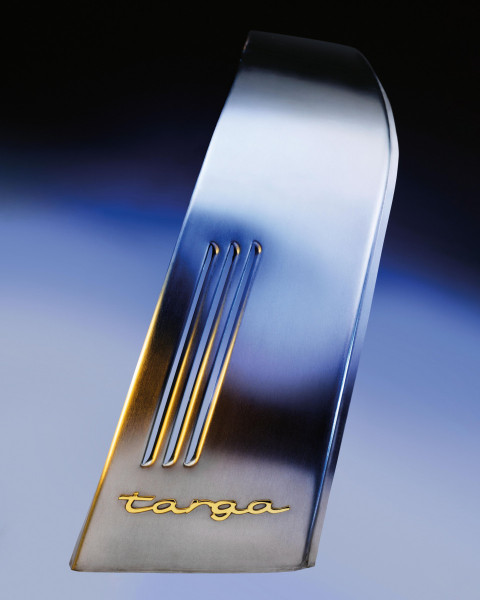 De naam Targa is ontleend aan de Targa Florio, de legendarische autorace op Sicilië waarmee Porsche door de jaren heen spectaculair succes boekte. Harald Wagner, destijds directeur Verkoop bij Porsche, stelde voor de nieuwe auto “Targa” te noemen en legde daarmee de basis voor een eigen modelreeks. Onder leiding van ontwerper Ferdinand Alexander Porsche groeide de Targa beugel uit tot een tastbaar symbool van vorm en functie.