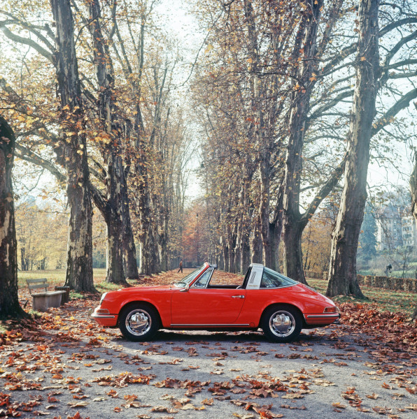 In augustus 1965 dient Porsche een patentaanvraag in voor het Targa-concept. Vanaf het najaar van 1966 wordt de nieuwe carrosserievariant toegevoegd aan de 911-serie. De Targa is nu beschikbaar als tweede optie naast de coupé. Vanaf de nazomer van 1967 is als optie een vast gemonteerde, verwarmde achterruit van veiligheidsglas leverbaar. Dit wordt al snel de standaard en zal het uiterlijk van de Targa tot 1993 aanzienlijk beïnvloeden. De eerste modellen hebben een opvouwbare plastic ruit aan de achterzijde. De softtop kan met een rits worden geopend en de vier opties bieden de bestuurder een bijzonder veelzijdige rijervaring: volledig gesloten, volledig open, met alleen het middelste dakdeel verwijderd of met de achterruit neergeklapt. Wanneer het dak volledig open is, waan je je in een cabriolet. In 1969 reageert Porsche op de wens naar meer comfort door de plastic ruit standaard te vervangen door een glazen ruit.