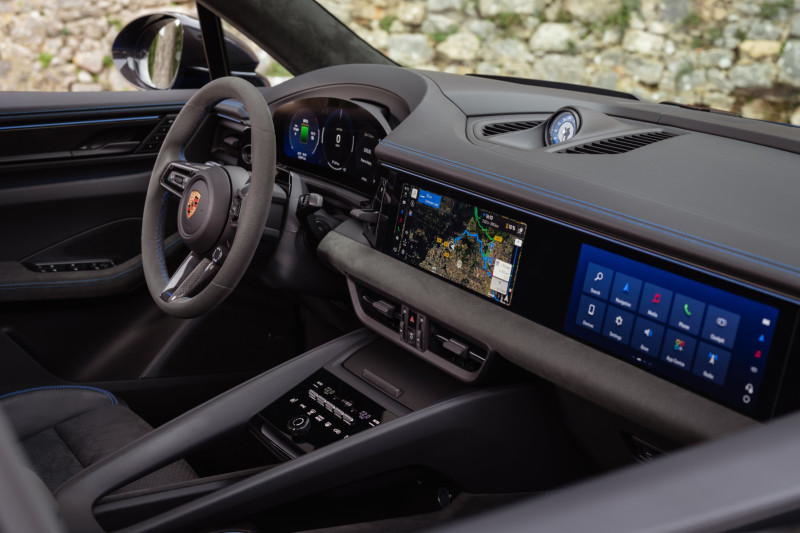Het 12,6 inch, volledig digitale en vrijstaande curved display van het instrumentenpaneel bevindt zich direct in het blikveld van de bestuurder. Zoals gebruikelijk bij Porsche vormt dit scherm het hoogste punt van het dashboard. Het centrale display is een 10,9 inch touchscreen met een hoge resolutie in Full HD kwaliteit.