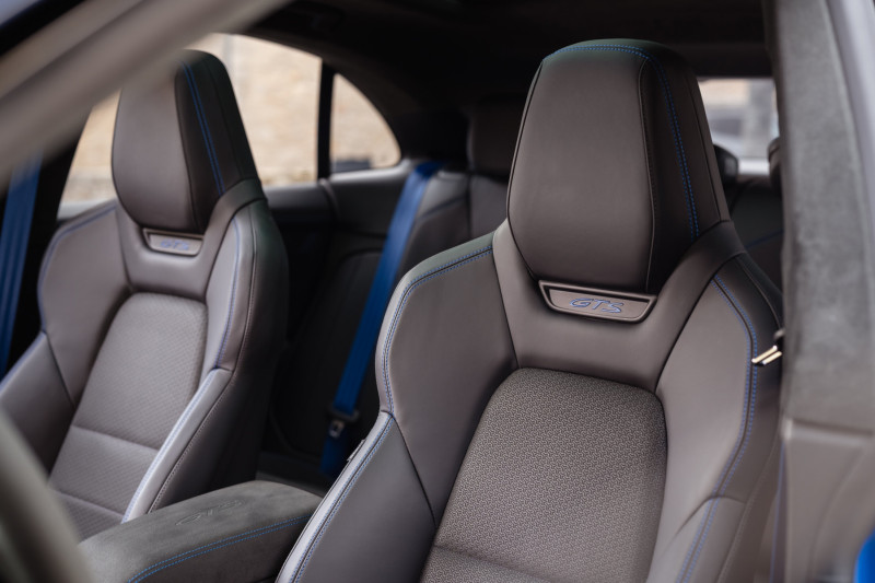 Voor een nog sportievere uitstraling is de Porsche Macan GTS standaard uitgerust met uitgebreide elementen in Race-Tex, in combinatie met in zwart leder afgewerkte delen. Race-Tex is toegepast op het verwarmbare multifunctionele GT sportstuurwiel, de armsteunen van de middenconsole, de deurpanelen en het dashboard. De middenbanen van de 18-voudig verstelbare adaptieve sportstoelen zijn eveneens bekleed met Race-Tex, waarbij het Diamar patroon een bijzonder detail vormt. Voor de zijwangen en hoofdsteunen is glad leder gebruikt.