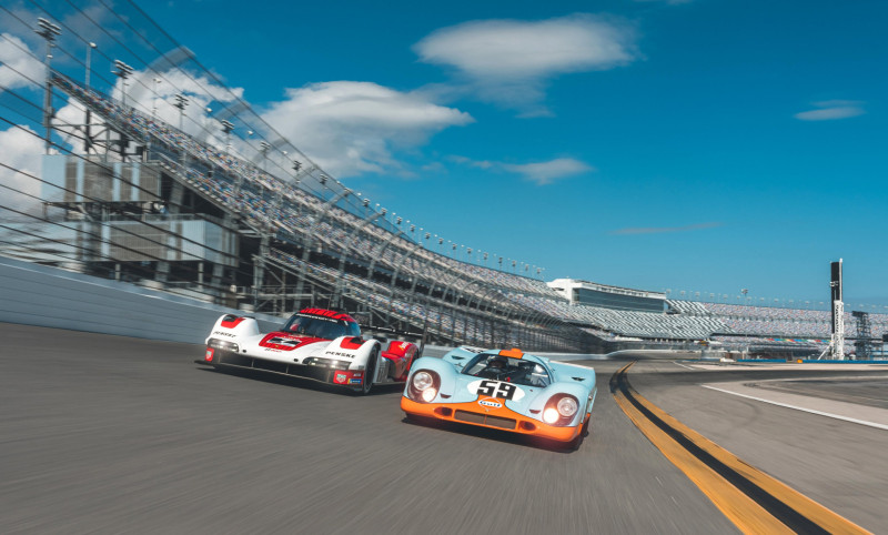 Porsche schrijft al 75 jaar autosportgeschiedenis. De 24 uur van Le Mans in 1951 wordt beschouwd als het eerste wapenfeit, toen een in de fabriek geprepareerde Porsche 356 SL in handen van een klantenteam een klasse-overwinning behaalde. De zegetocht van Porsche in Daytona begon slechts een paar jaar later, op 5 april 1959. Minder dan twee maanden na de officiële opening van de indrukwekkende Daytona International Speedway organiseerde de United States Auto Club (USAC) voor het eerst een sportwagenrace. Toen al bestond de lay-out uit een combinatie van de NASCAR ‘oval’ en de ‘infield road course’. De kampioenschapsrace, die oorspronkelijk gepland stond voor meer dan 1.000 kilometer, werd na zes uur gestaakt vanwege het vallen van de avond. De winnaars kwamen uit Argentinië én ze raceten in een Porsche: Roberto Mieres en Antonio von Döry behaalden de overwinning in een 718 RSK, vóór de Porsche van de Amerikanen Bob Said en Art Bunker. Omdat er een andere organisatie bij betrokken was, komt deze race niet voor in de officiële IMSA-statistieken.